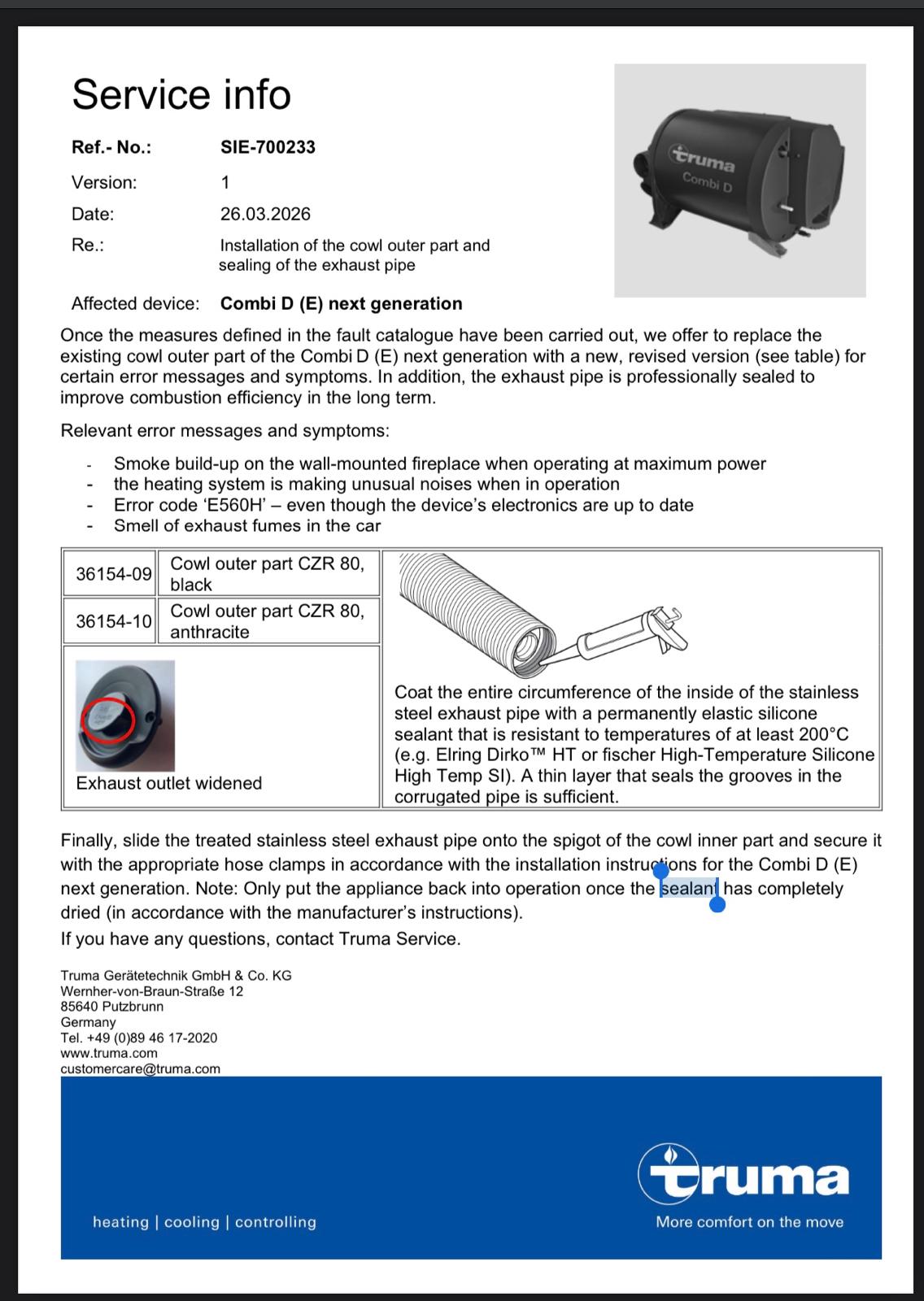 Truma a introdus modificări inclusiv în procedurile de mentenanță, ceea ce înseamnă că: